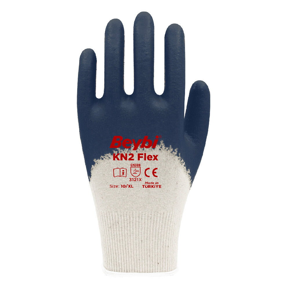 KN2-Handschuhe liegen besser in der Hand und bieten durch ihre baumwollgefütterte Textur, das Strickbündchen und die spezielle Form einen hohen Tragekomfort. Er ist widerstandsfähiger gegen Abrieb und Reißen.