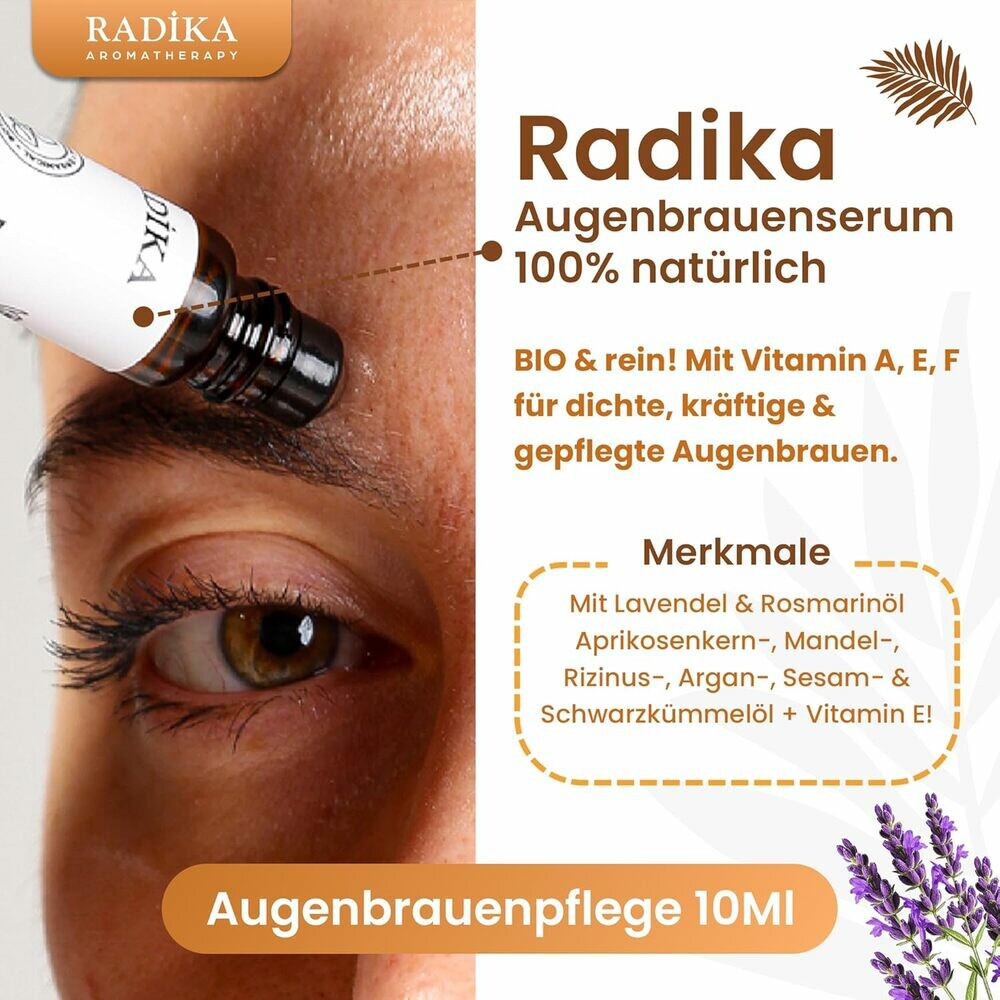 Das Augenbrauen-Pflegeöl von Radika wird zur Stärkung der Augenbrauenfollikel, zur Unterstützung des neuen Haarwachstums und zur Stärkung und Neustrukturierung der Haarfollikel verwendet.