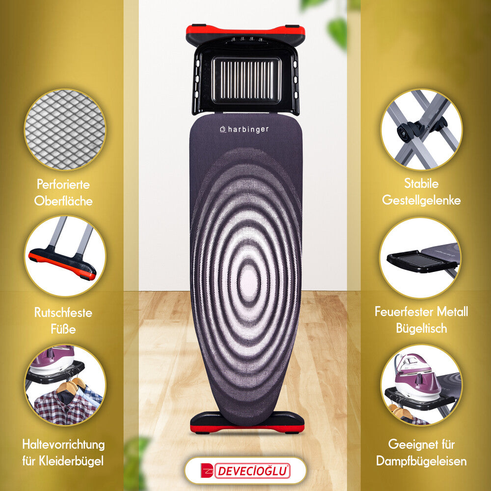 Einfaches Bügeln: Höhenverstellbares Bügelbrett (80-105 cm) Unser höhenverstellbares Bügelbrett ermöglicht Ihnen die perfekte Arbeitshöhe einzustellen, um Rücken- und Nackenschmerzen zu vermeiden. Stabil und ergonomisch für komfortables Bügeln.