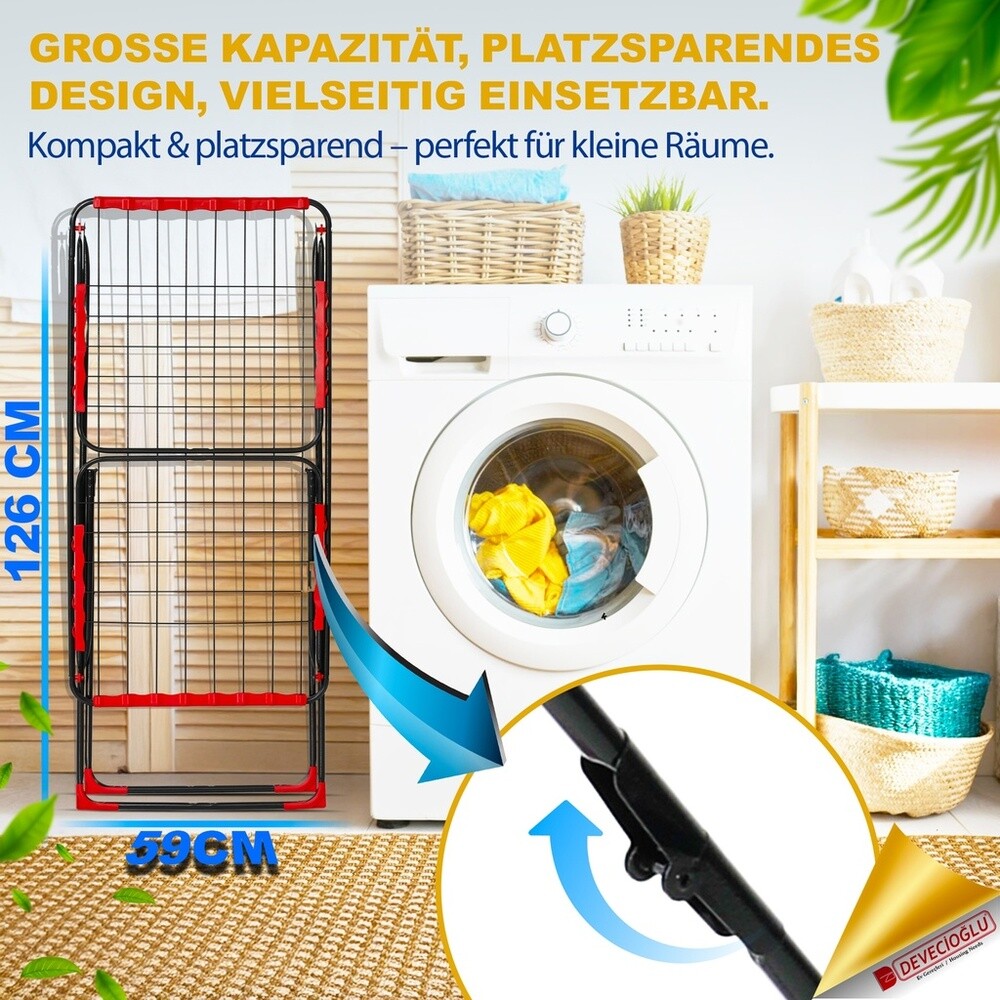 Devecioğlu Flügelwäschetrockner, Klappbar, 20m Trockenlänge, Standtrockner