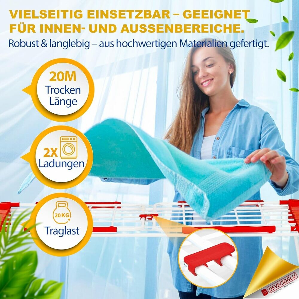 | Tags: | 20m Trockenlänge, Devecioğlu Flügelwäschetrockner, Klappbar, Standtrockner, |