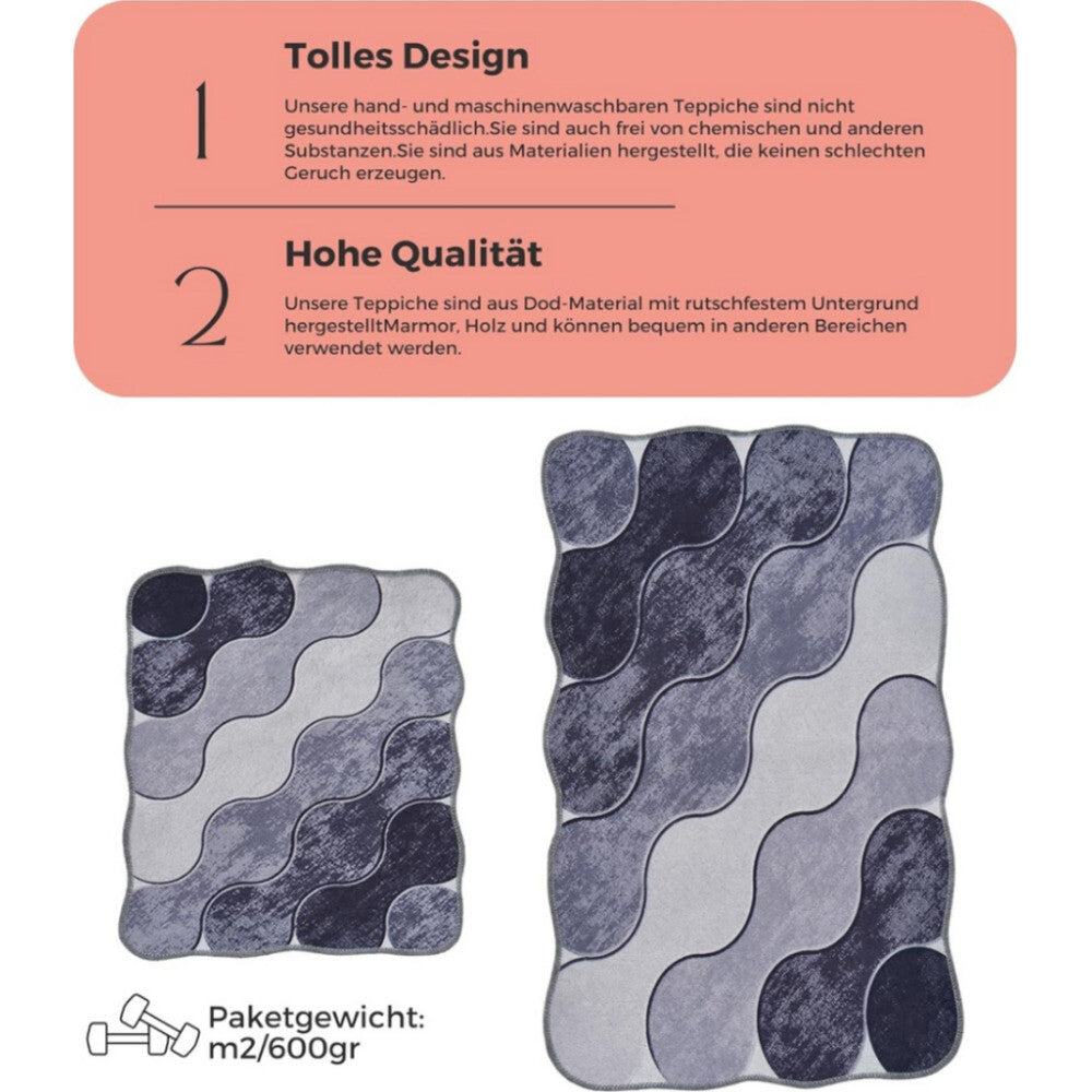 Miqna 2-tlg. rutschfestes Badteppich Set , waschbar (60x100 & 50x60 cm)