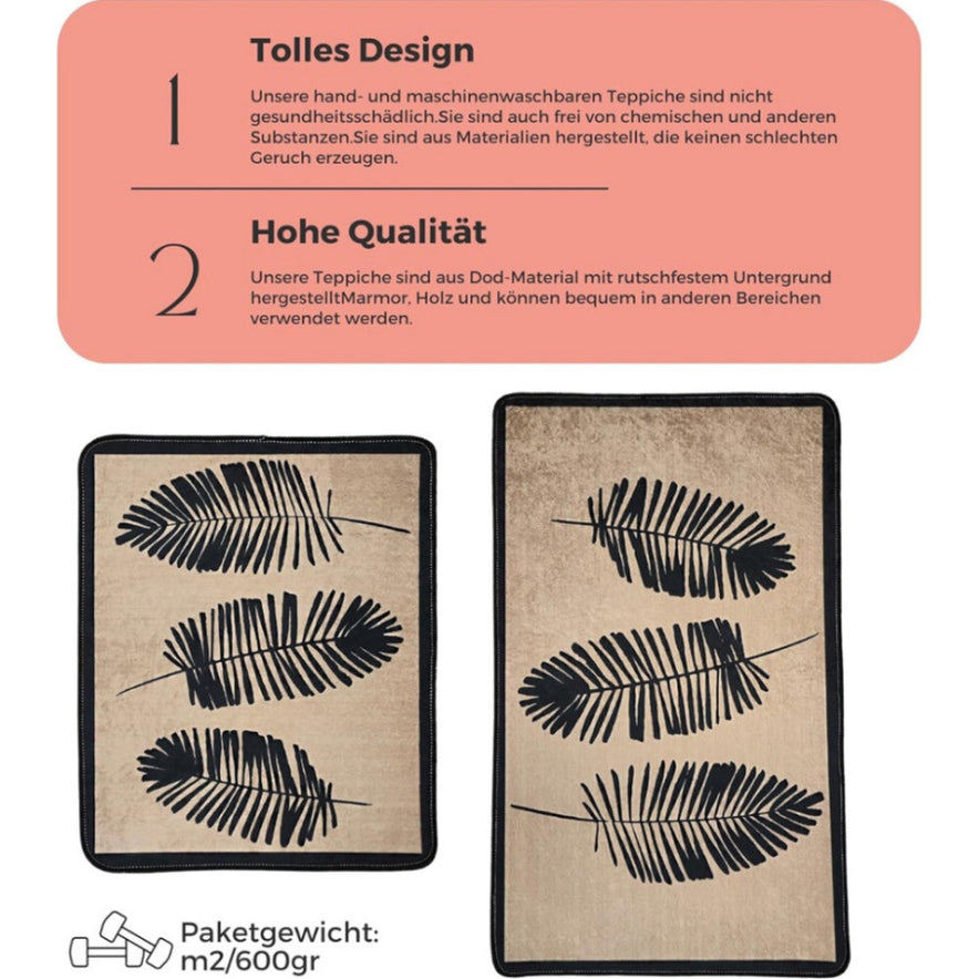 Miqna 2-tlg. rutschfestes Badteppich Set , waschbar (60x100 & 50x60 cm)