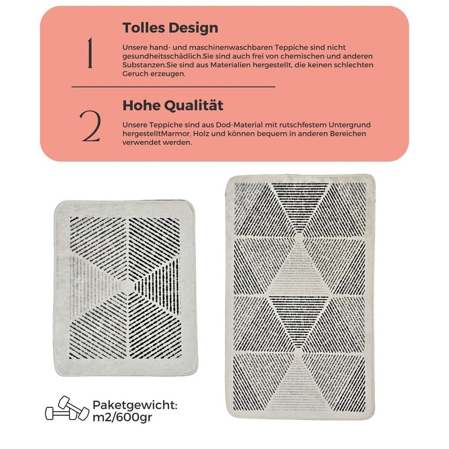 Miqna 2-tlg. rutschfestes Badteppich Set , waschbar (60x100 & 50x60 cm)