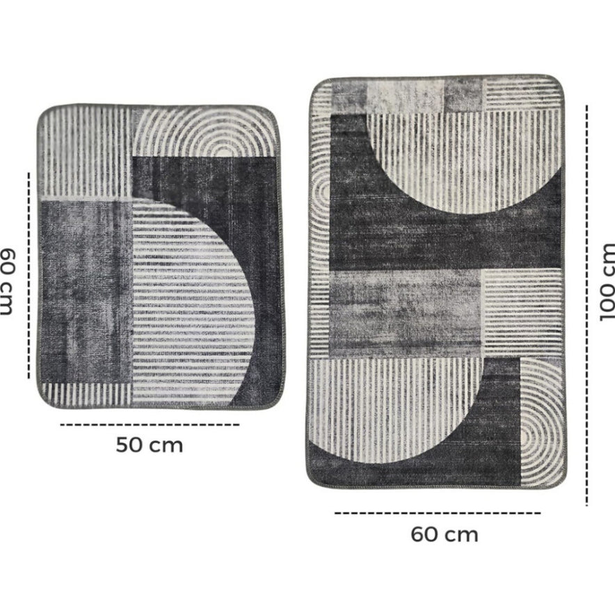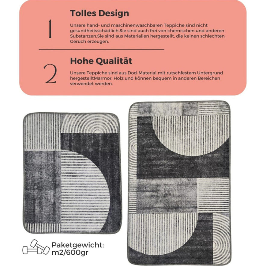 Miqna 2-tlg. rutschfestes Badteppich Set , waschbar (60x100 & 50x60 cm)