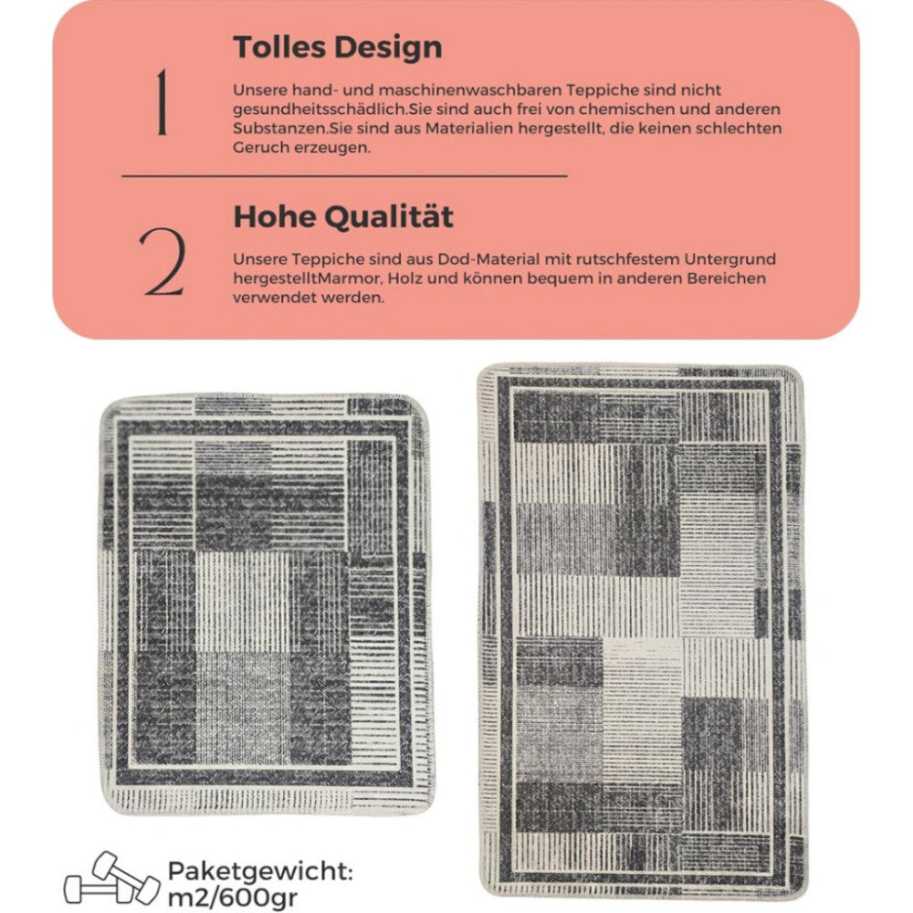 Miqna 2-tlg. rutschfestes Badteppich Set , waschbar (60x100 & 50x60 cm)