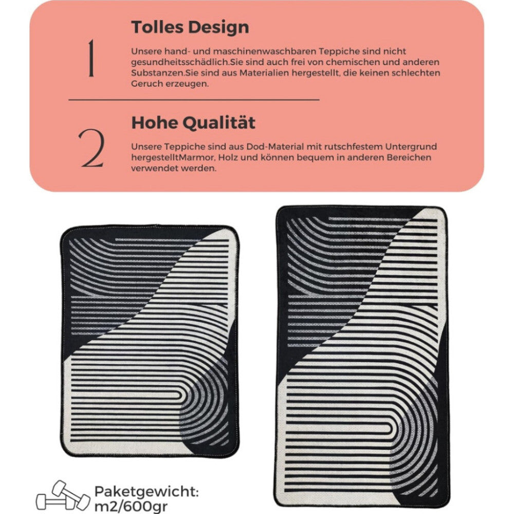 Miqna 2-tlg. rutschfestes Badteppich Set , waschbar (60x100 & 50x60 cm)