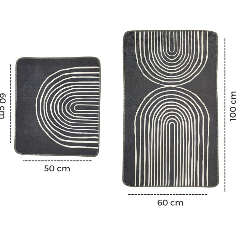 Miqna 2-tlg. rutschfestes Badteppich Set , waschbar (60x100 & 50x60 cm)