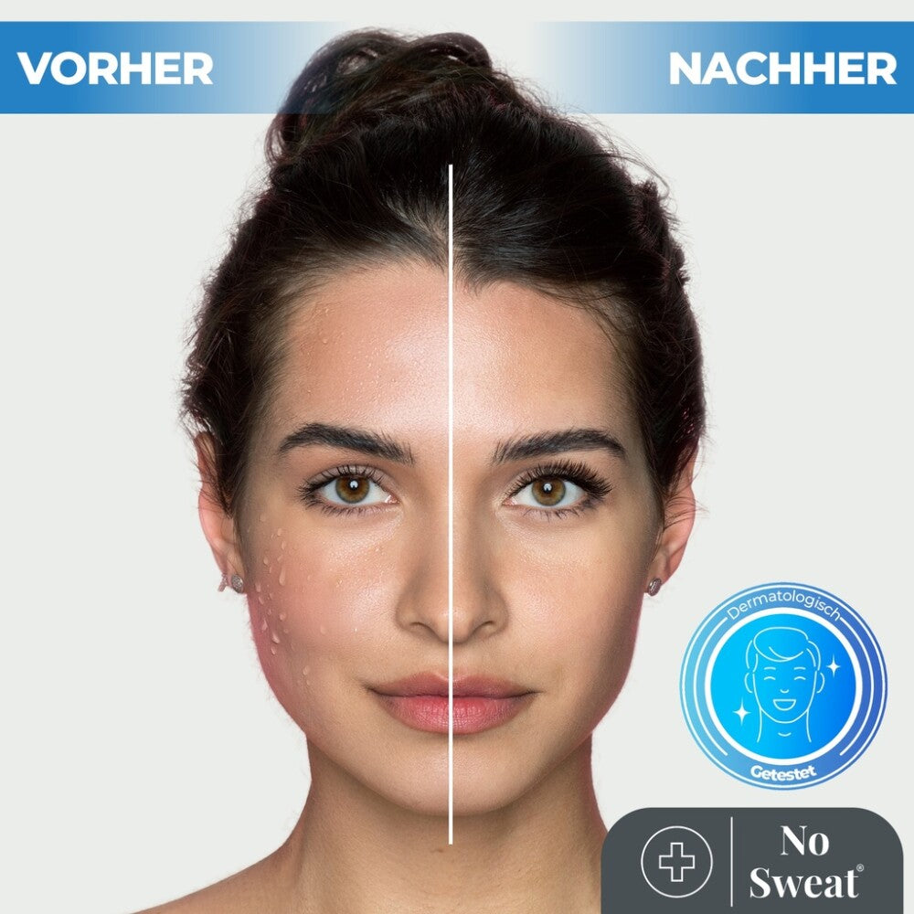 Entdecken Sie die bemerkenswerte Wirksamkeit von No Sweat Anti-Transpirant Gel, eine Lösung, die der Herausforderung des übermäßigen Gesichtsschwitzens effektiv entgegengeht. Dieses maßgeschneiderte Gesichtsgel ist sowohl für Männer als auch für Frauen geeignet und schützt zuverlässig vor Gesichtsschweiß und behält gleichzeitig ein makellos sanftes Gefühl auf Ihrer Haut. Hergestellt mit einer wirksamen, konzentrierten Formel, funktioniert dieses leistungsstarke Antitranspirant optimal, wenn es ein- oder zweimal täglich verwendet wird.