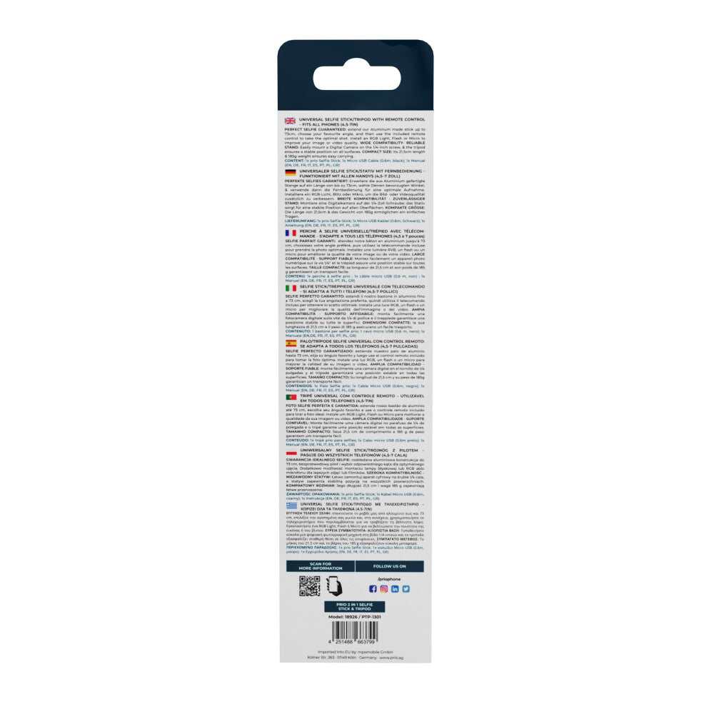prio 2 in 1 universeller Handy-Selfie-Stick & Stativ, schwarz