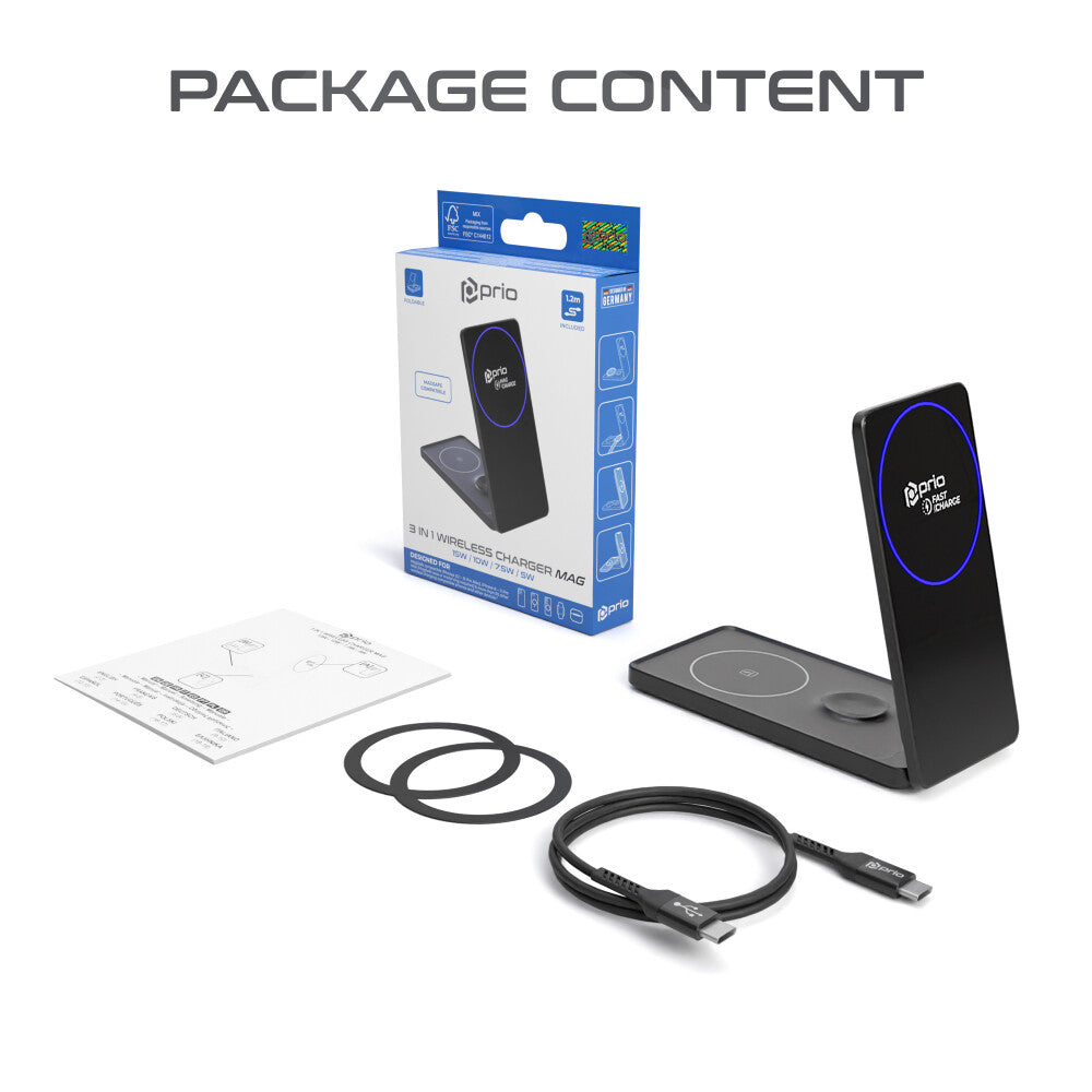 • 1x prio 3 in 1 kabelloses Schnellladegerät MAG (schwarz);