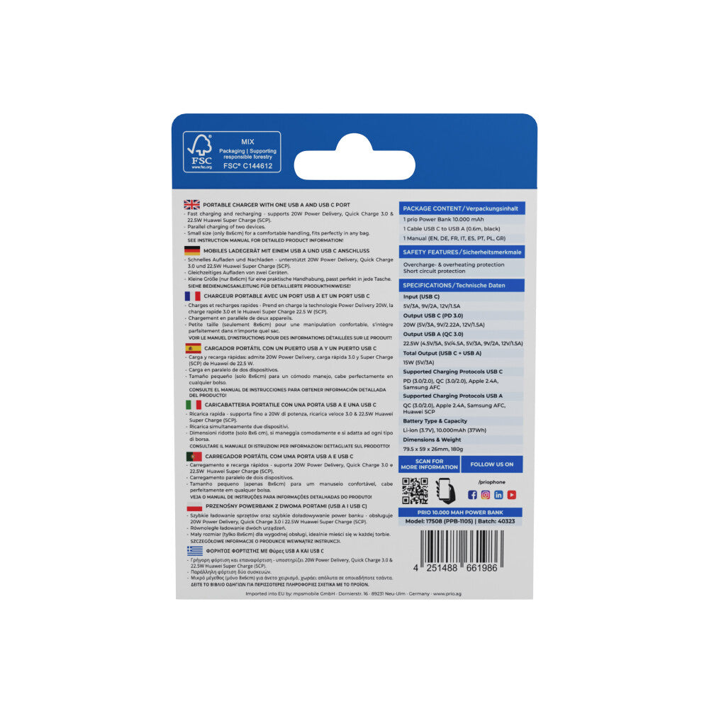 Prio Fast Charge (22.5W SCP/20W PD/ QC3.0 ) Power Bank 10.000mAh schwarz