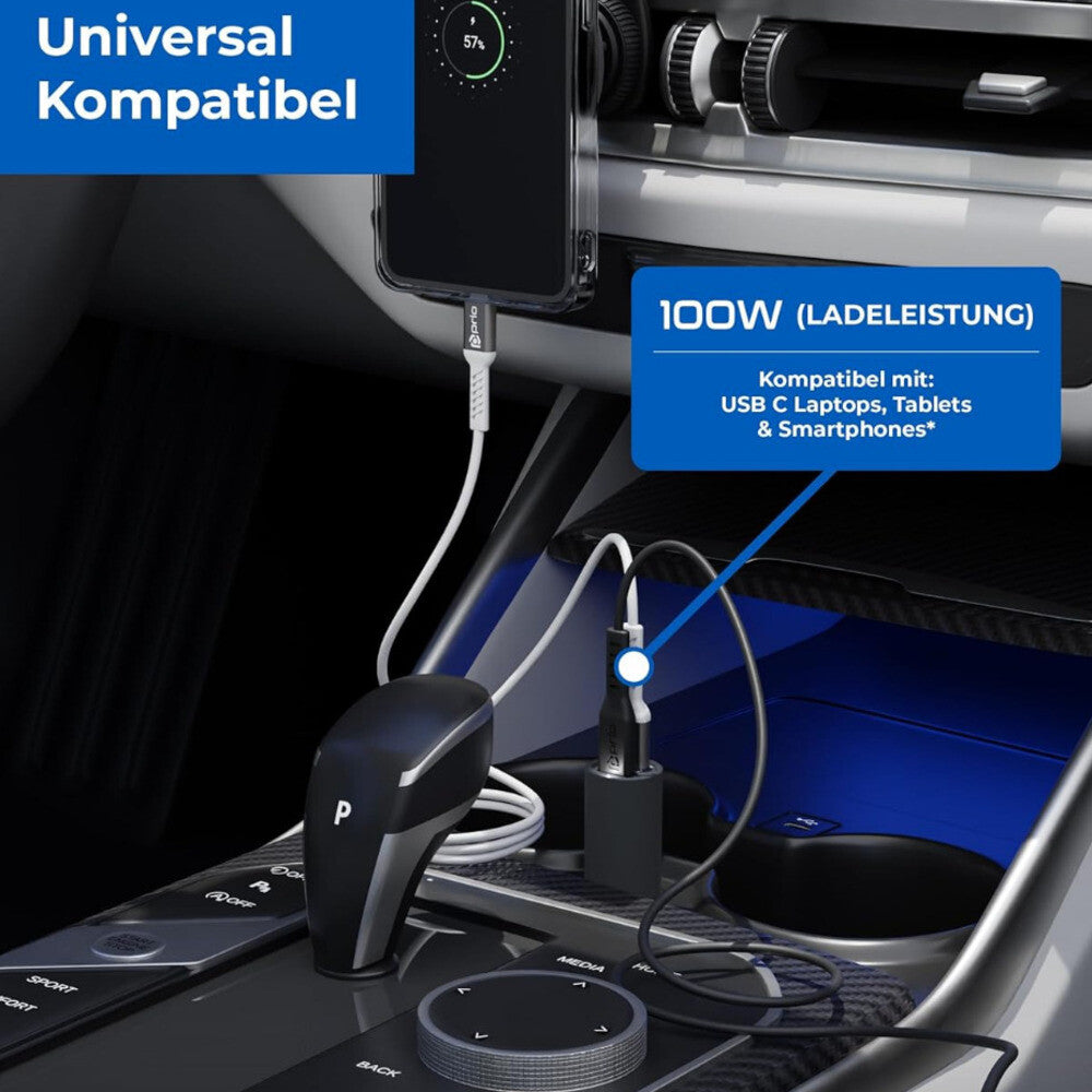 prio Fast Charge Autoladegerät 100W PD (USB C) + 22,5W (USB A) schwarz