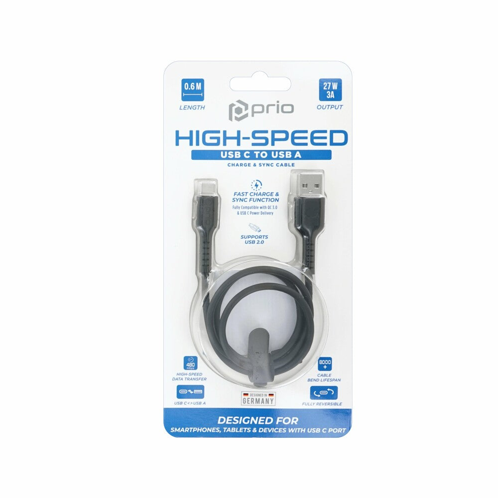 prio High-Speed Charge & Sync USB C auf USB A Kabel 3A 0,6m schwarz