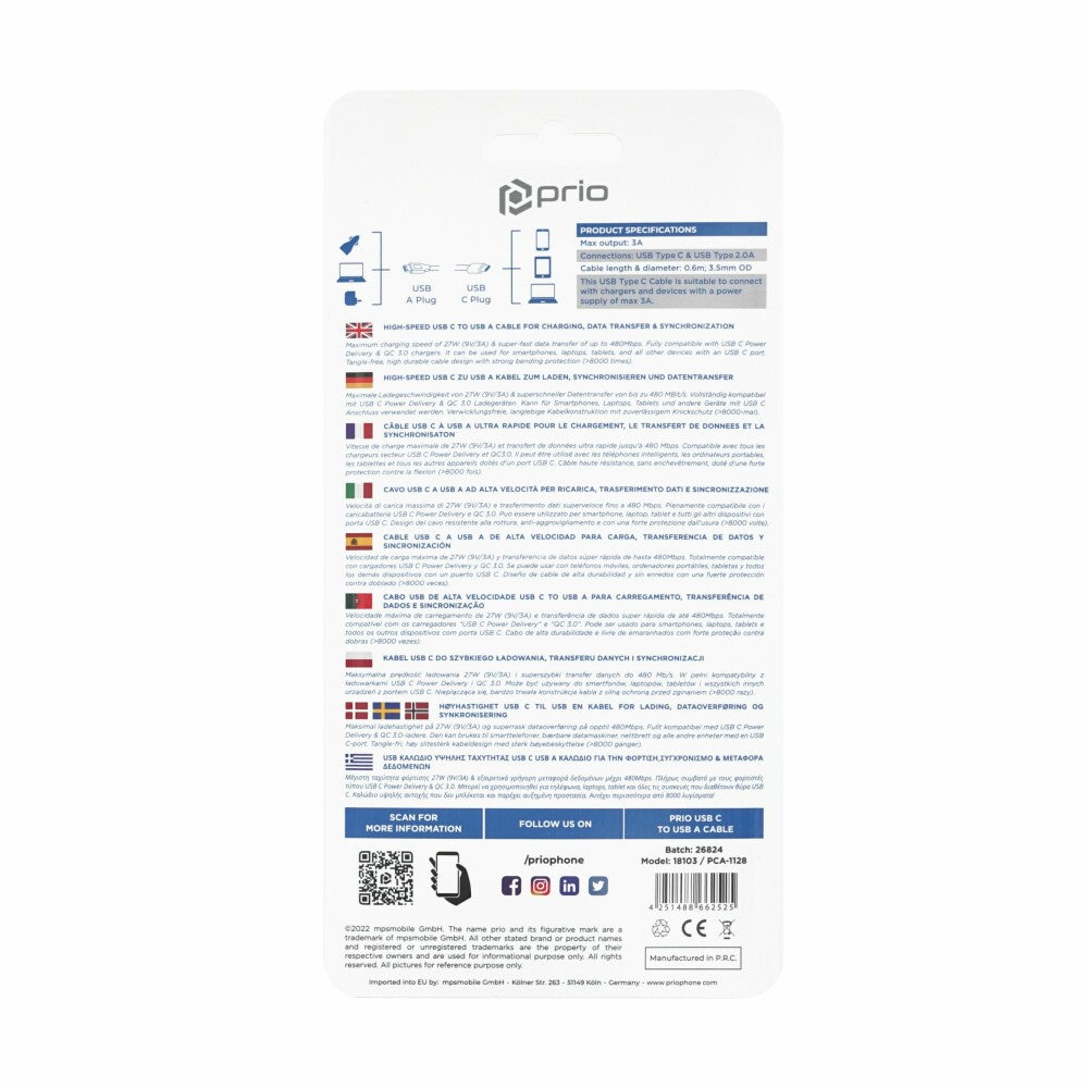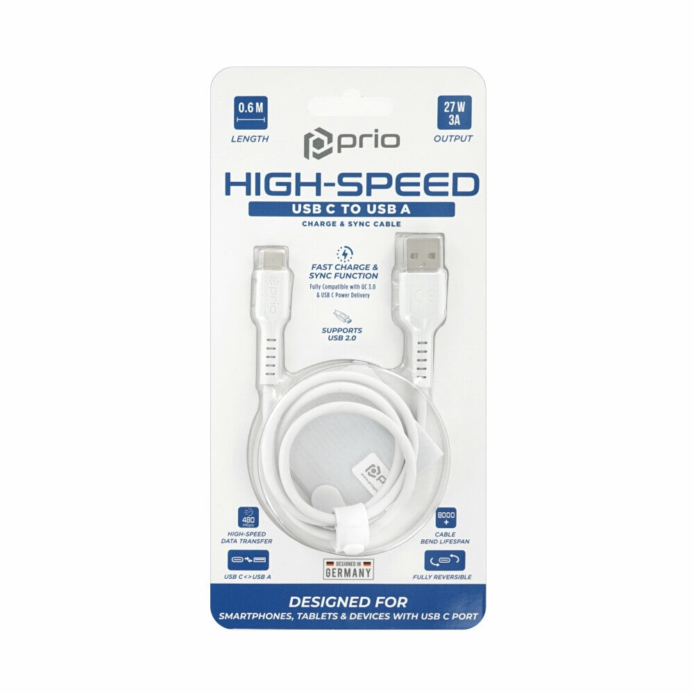 Prio High-Speed Charge & Sync USB C auf USB A Kabel 3A 0,6m weiß