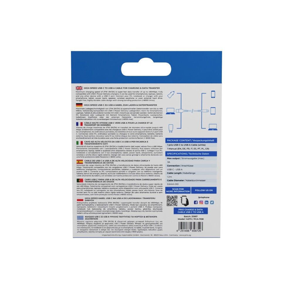 Prio High-Speed Charge & Sync USB C auf USB A Kabel 3A 1,2m weiß