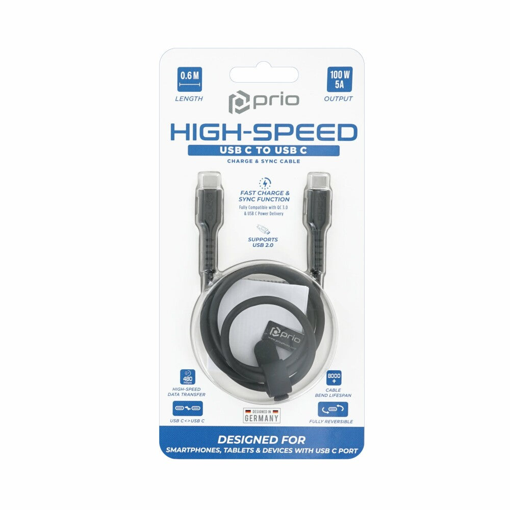 prio High-Speed Charge & Sync USB C auf USB C Kabel 5A 0,6m schwarz