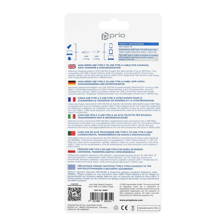 prio High-Speed Charge & Sync USB C zu USB A Kabel 3A 0.25m weiß