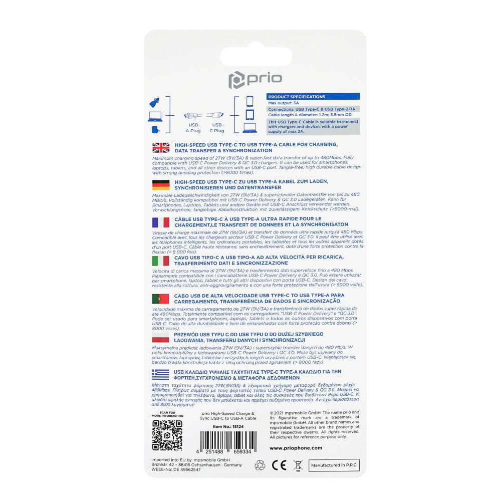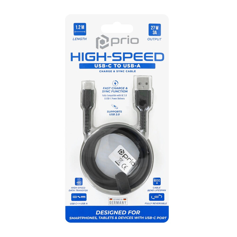 prio High-Speed Charge & Sync USB C zu USB A Kabel 3A 1.2m schwarz