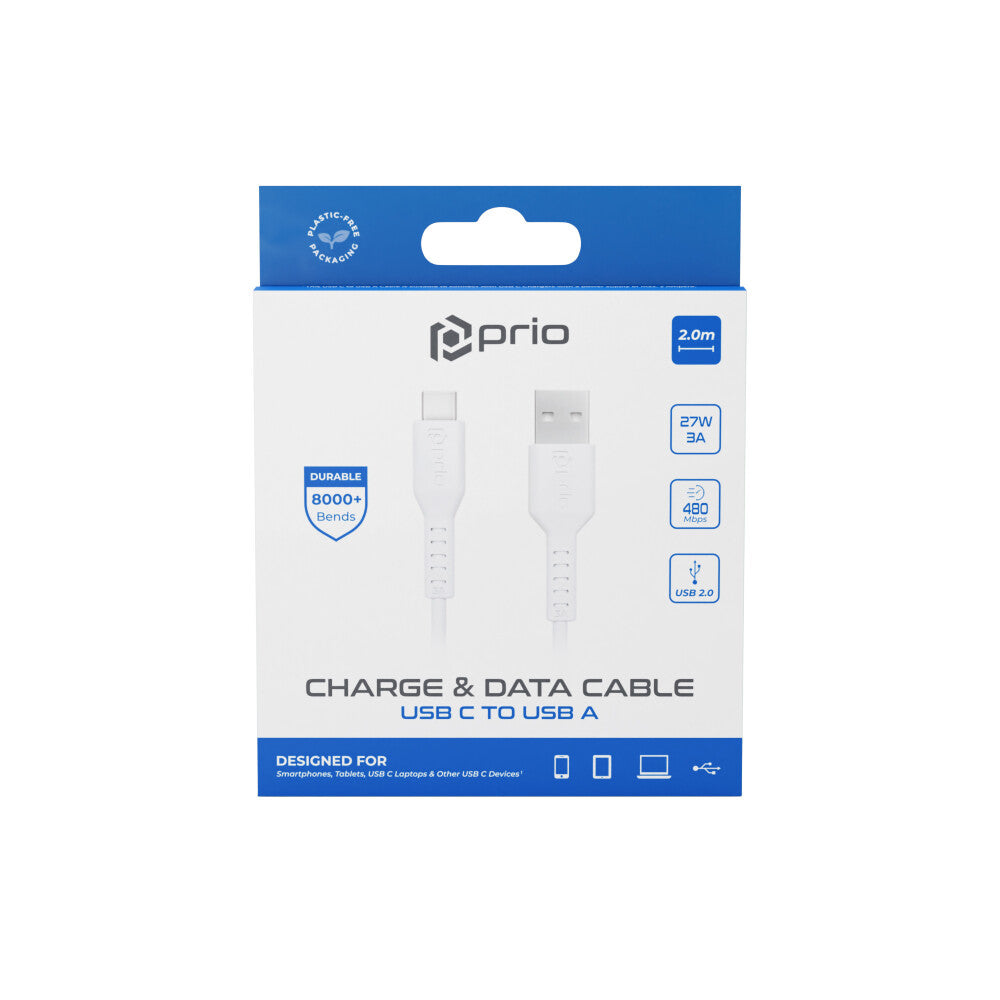 prio High-Speed Charge & Sync USB C zu USB A Kabel 3A 2 m weiß