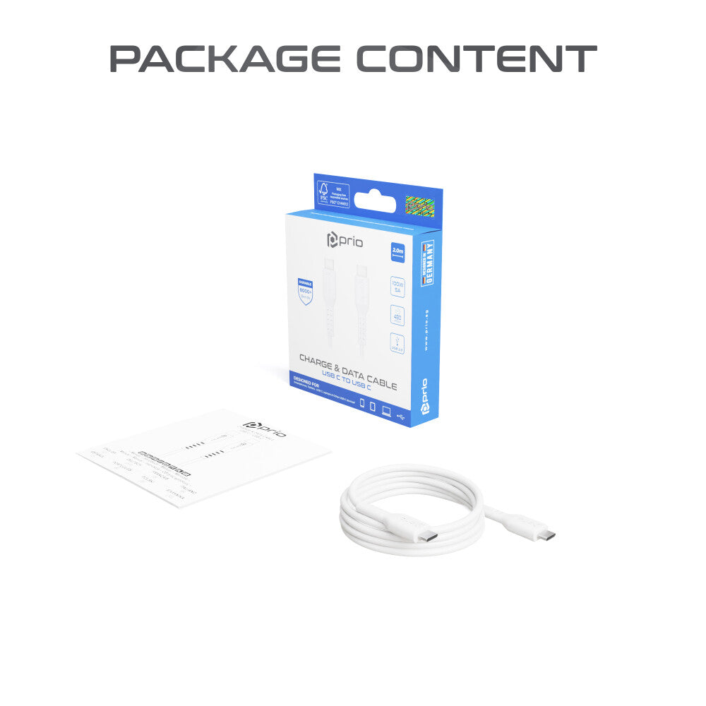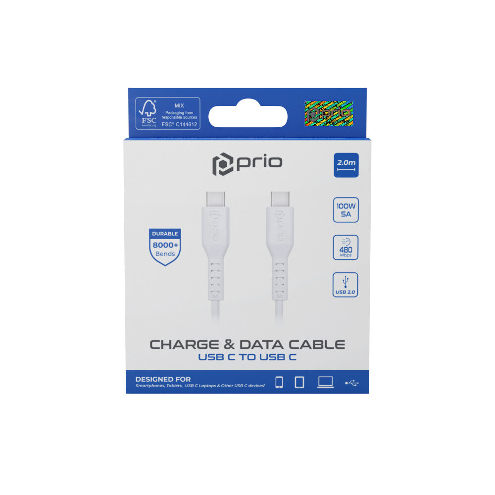 prio High-Speed Charge & Sync USB C zu USB C Kabel 5A 2m weiß