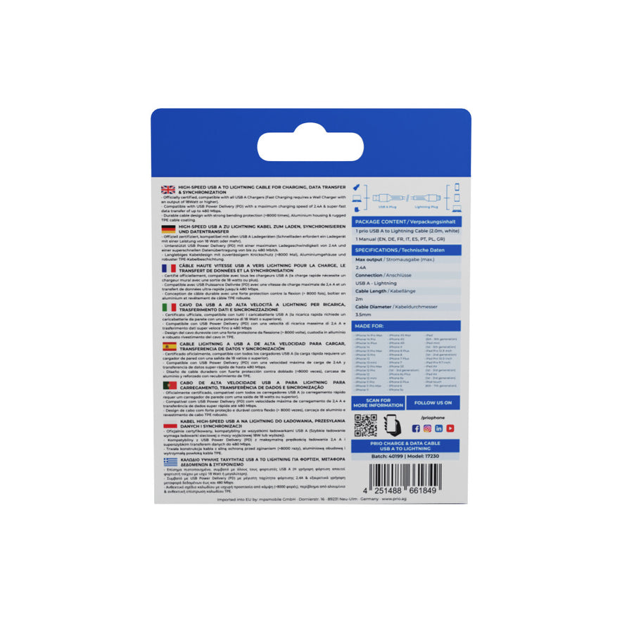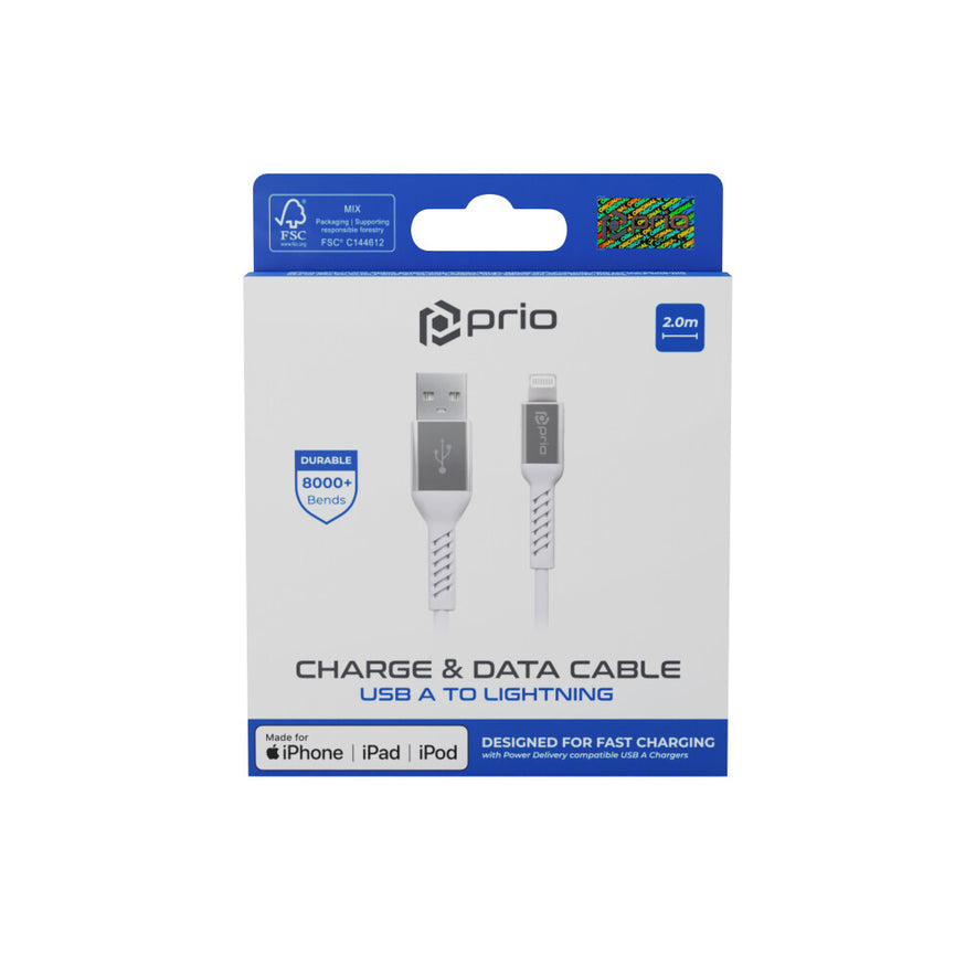 prio Lade- und Synchronisierungskabel USB A auf Lightning Mfi zertifiziert 2m weiß