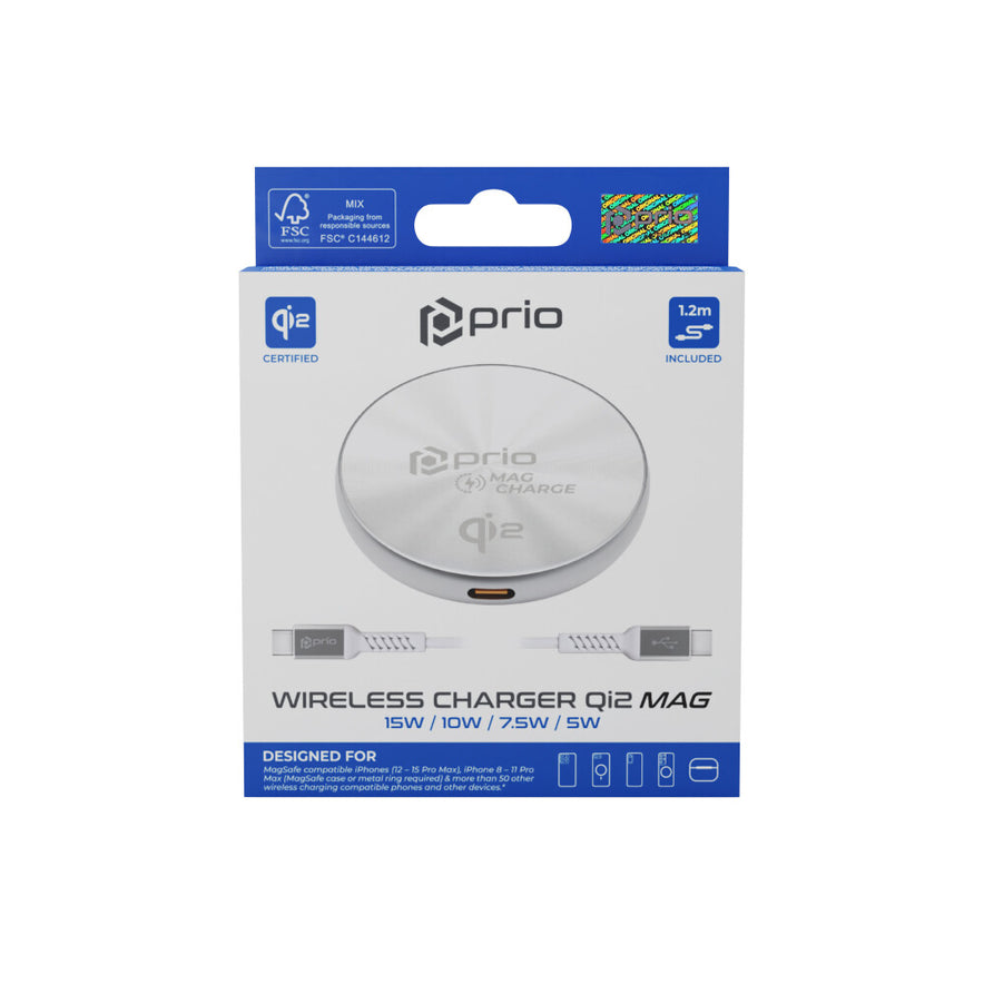 prio Magnetisches kabelloses Ladegerät MAG (USB C) silber