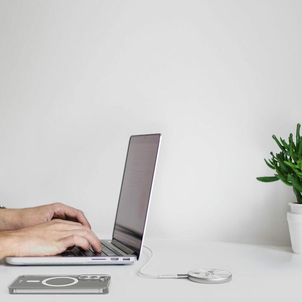BREITE KOMPATIBILITÄTFunktioniert perfekt mit MagSafe-kompatiblen iPhones (12 - 16 Pro Max), iPhone (8 - 11 Pro Max) & Android-Smartphones, welche kabelloses Laden unterstützen.ZUVERLÄSSIGE MAGNETISCHE AUSRICHTUNGLässt sich perfekt an der Rückseite Deines iPhone (12 oder höher) oder einer MagSafe-kompatiblen Hülle befestigen. Nutze zum automatischen Aufladen den mitgelieferten Metallring mit jedem anderen geeigneten Telefon.ELEGANT & KLEINSchlankes Design & hochwertige Verarbeitung, das perfekte Ladegerät für Deinen Schreibtisch oder auf Reisen.PRODUKTSPEZIFIKATIONEN:Energieaufnahme (Input) USB C: (USB C): 5V/3A, 9V/2.22AAusgangsleistung (kabellos): 5W / 7.5W / 10W / 15WLadetechnologie und -protokoll: Induktive kabellose Schnellladetechnologie (Qi2)Frequenzbereich: 110~205 kHzÜbertragungsreichweite: 0~8 mmLadeeffizienz: 83%Abmessungen: 61 x 61 x 8 mmGewicht: 47g (ohne Kabel)ses Ladegerät MAG (USB C) silber