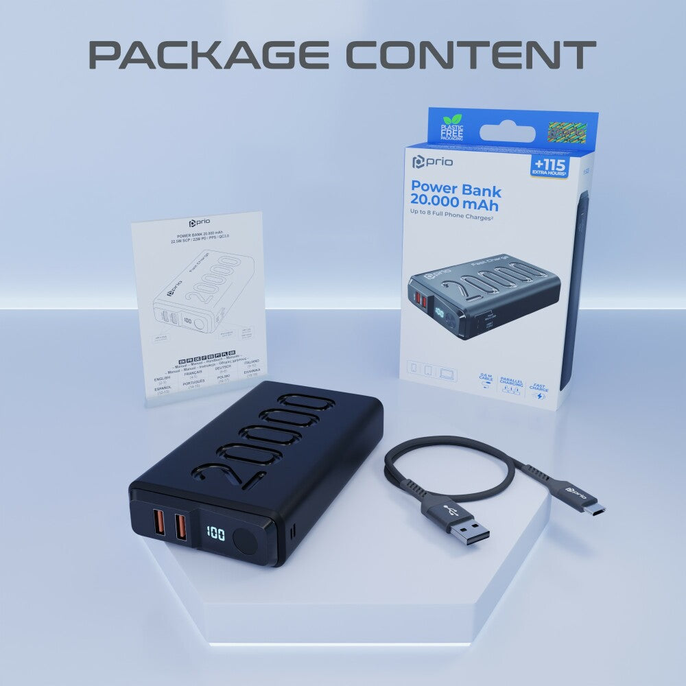 prio Schnelllade (22.5W SCP / 20W PD / QC3.0 ) Powerbank 20.000mAh schwarz
