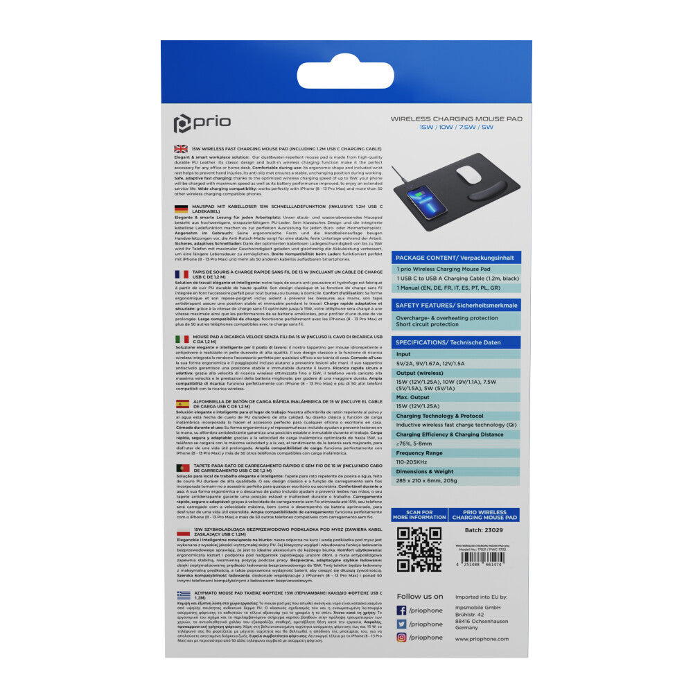 prio Schnelllade-Mauspad 15 W (USB C) grau