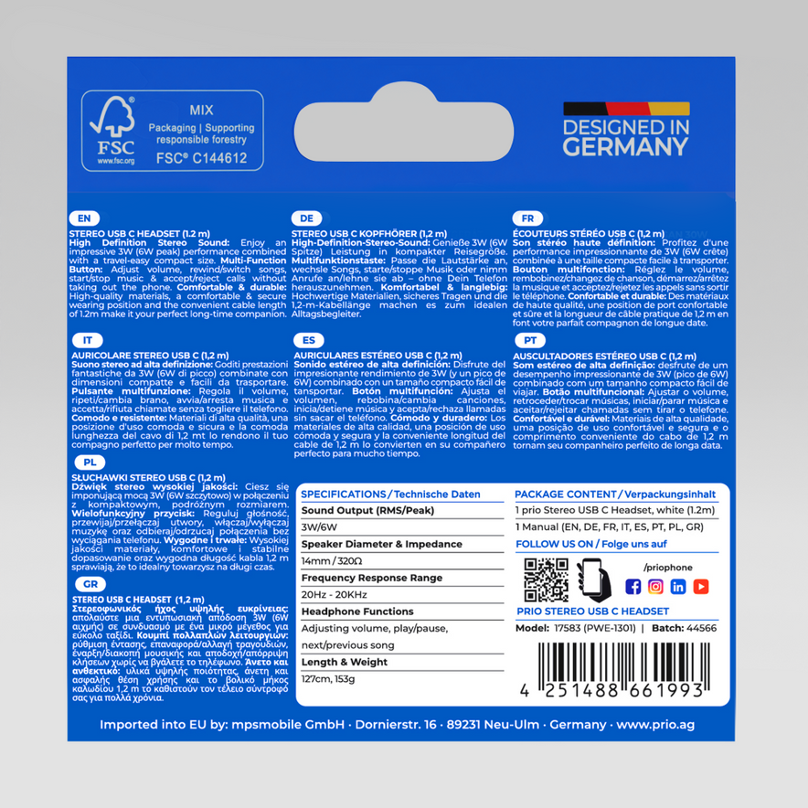prio Stereo USB C Kopfhörer / Headset CLASSIC