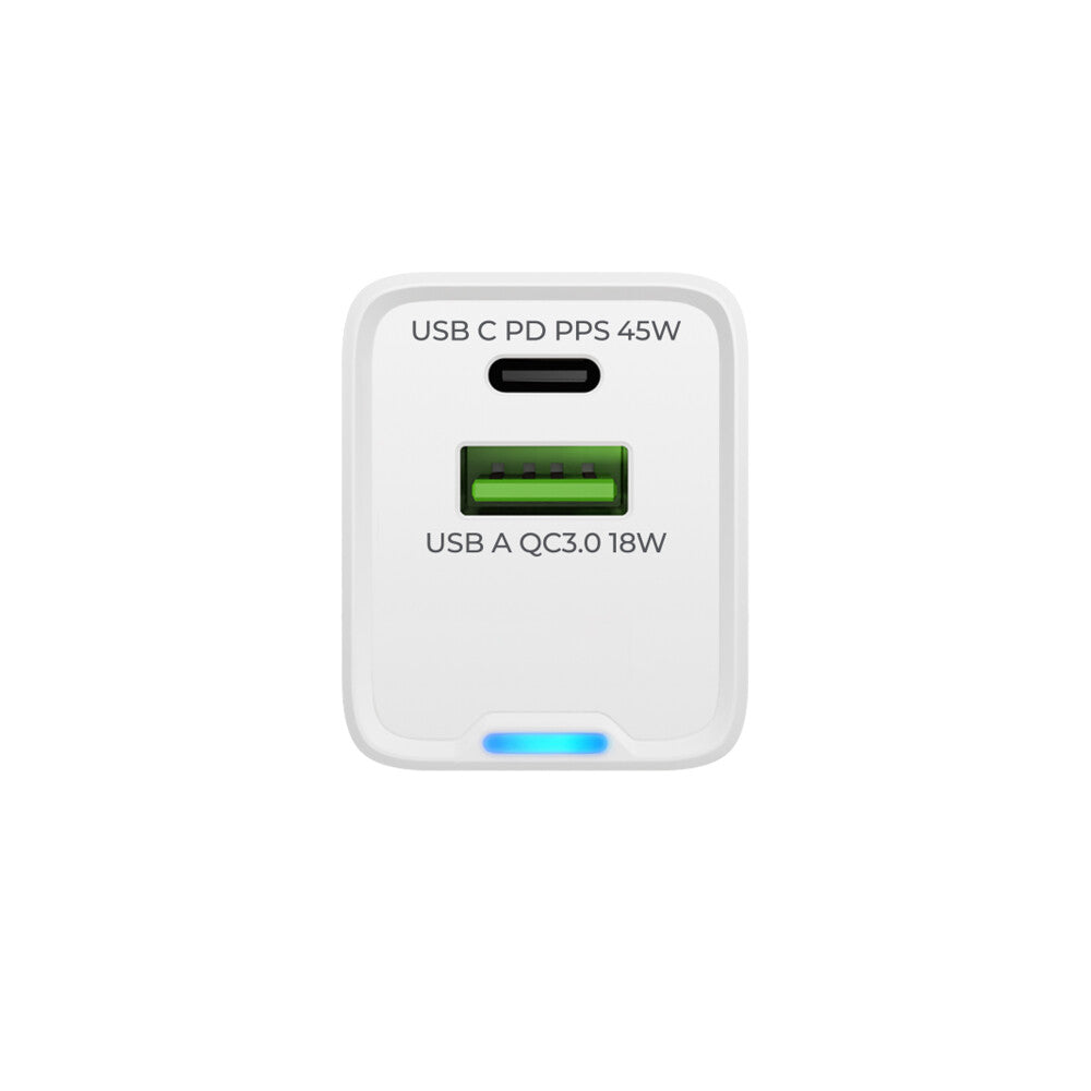 prio Wandladegerät GaN Power 45W PD PPS (USB C) + QC 3.0 (USB A) weiß