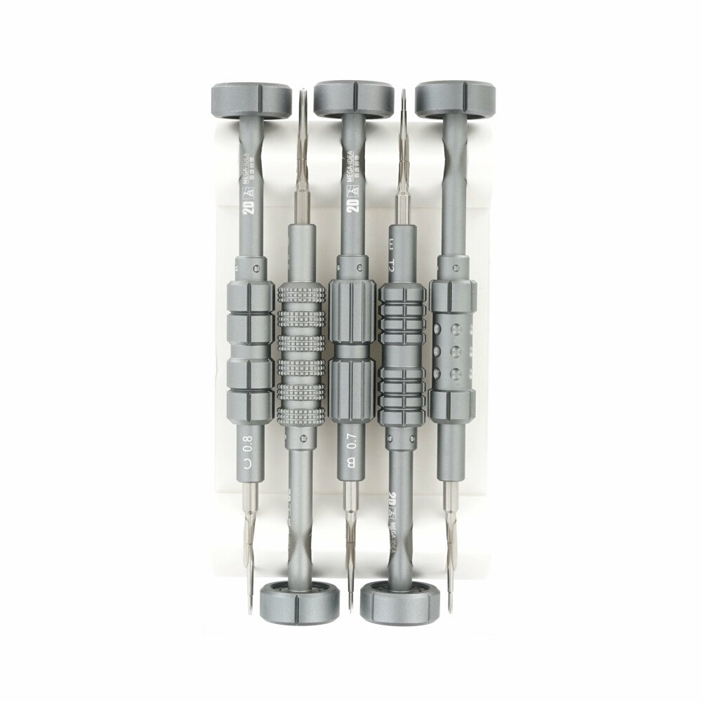 Der QIANLI 2D Präziser Schraubendreher im Granatenstil ist das ideale Werkzeugset für Ihre Reparaturarbeiten. In diesem Set erhalten Sie fünf hochwertige Schraubendreher, jeweils im stilvollen Granatenstil-Design.- Modell A: Phillips: Perfekt geeignet für die Entfernung von Kreuzschlitzschrauben.- Modell B: Tri-Point: Ideal zum Entfernen von Schrauben mit Dreipunktkopf.- Modell C: Pentalobe: Geeignet für die Demontage von speziellen Schrauben, wie sie in Apple-Geräten verwendet werden.- Modell D: Convex Cross: Entwickelt für die Bearbeitung von konvexen Kreuzschlitzschrauben.- Modell E: T2 Torx: Unverzichtbar für die Reparatur von Elektronikgeräten mit Torx-Schrauben.Jeder Schraubendreher zeichnet sich durch Präzision, Langlebigkeit und Benutzerfreundlichkeit aus. Das ergonomische Design sorgt für einen bequemen Griff und eine einfache Handhabung.Egal, ob Sie ein Profi-Techniker oder ein DIY-Enthusiast sind, das QIANLI 2D Präziser Schraubendreher-Set im Granatenstil wird Ihre Reparaturarbeiten effizienter und einfacher gestalten. Holen Sie sich jetzt Ihr Set und seien Sie perfekt ausgestattet für jede Reparaturherausforderung.