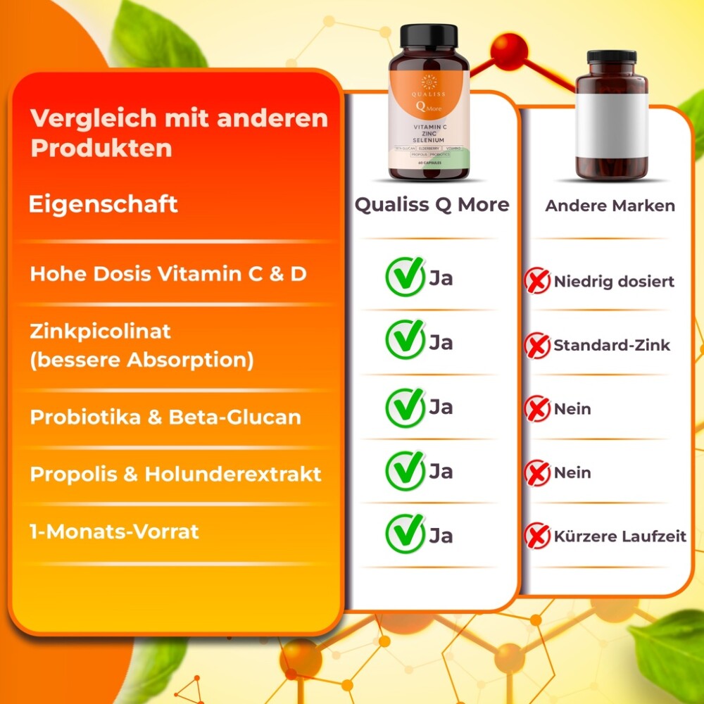 | Tags: | Qualiss® 3 Stück Vitamin C | Immunsystem stärken Erwachsene | Insgesamt 180 Kapseln, |