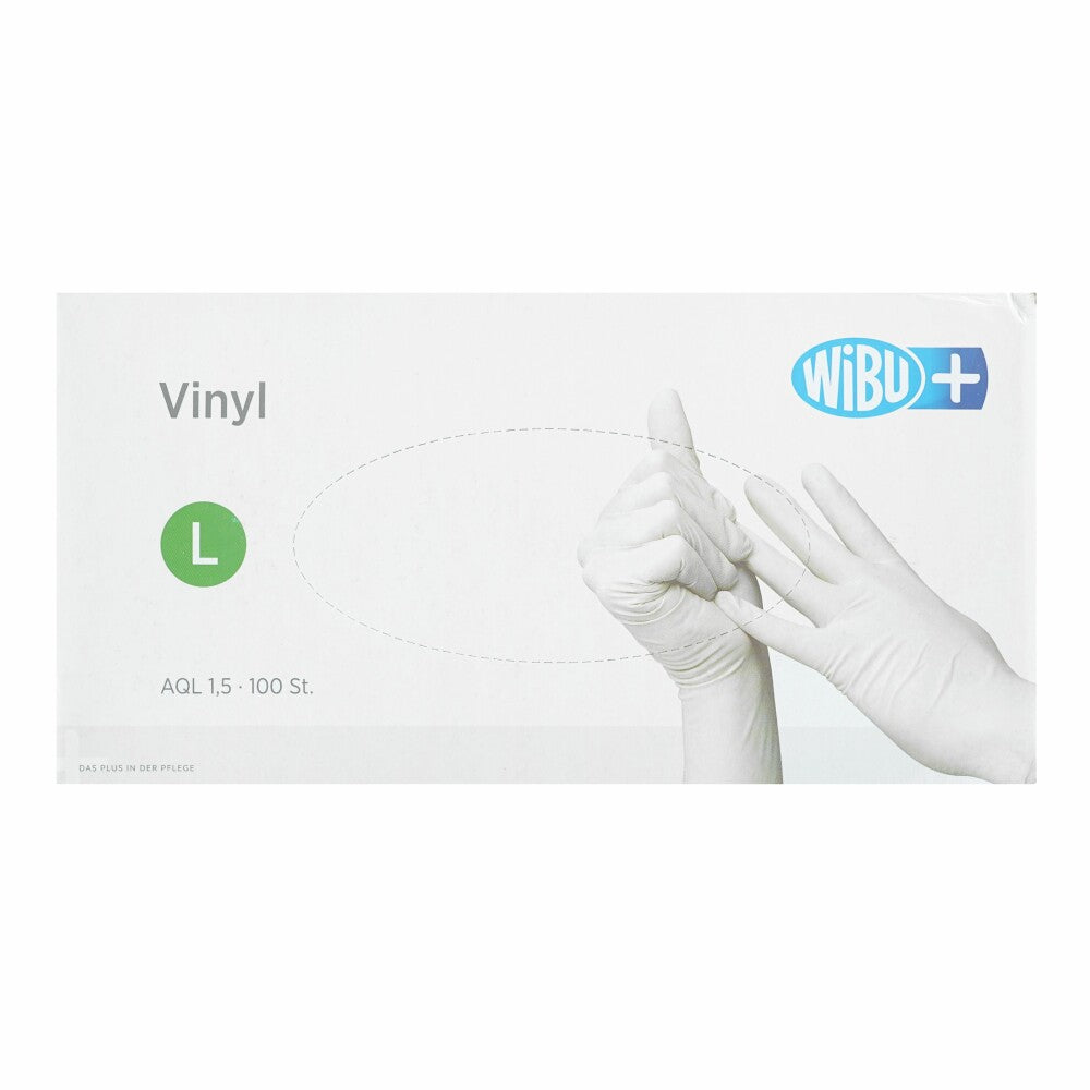 Info: Wibu+ vinyl gloves, 100 pieces, size L, clear