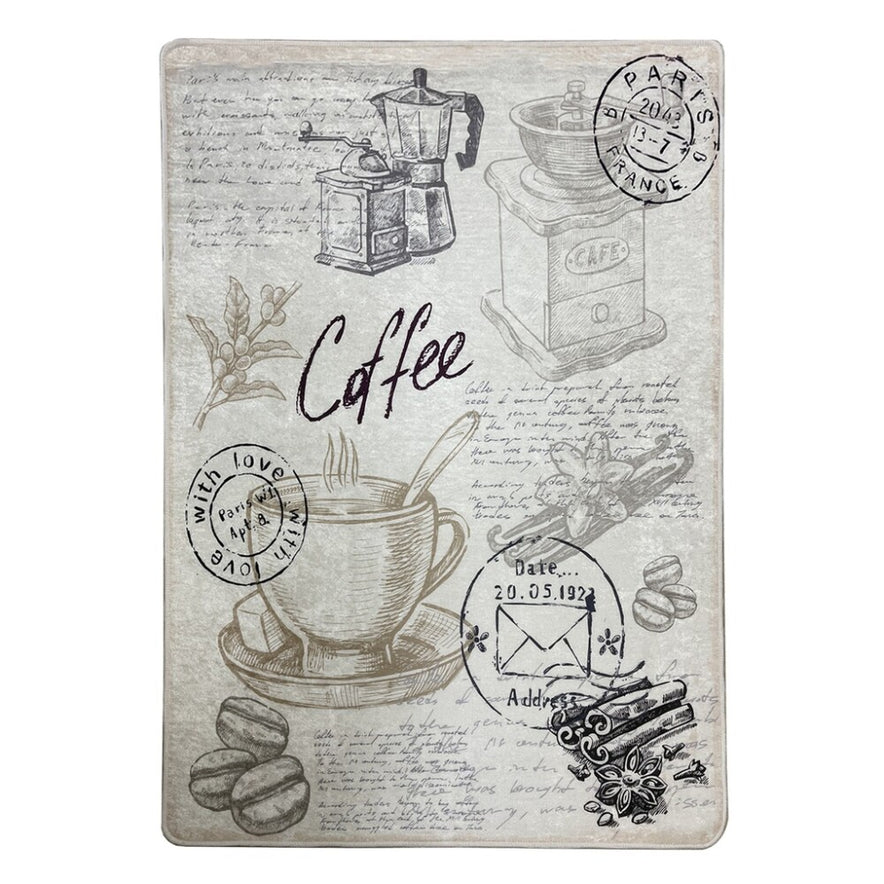 miqna Küchenteppich Gel Läufer Grau Weiß Schwarz – rutschfest, Coffee Design