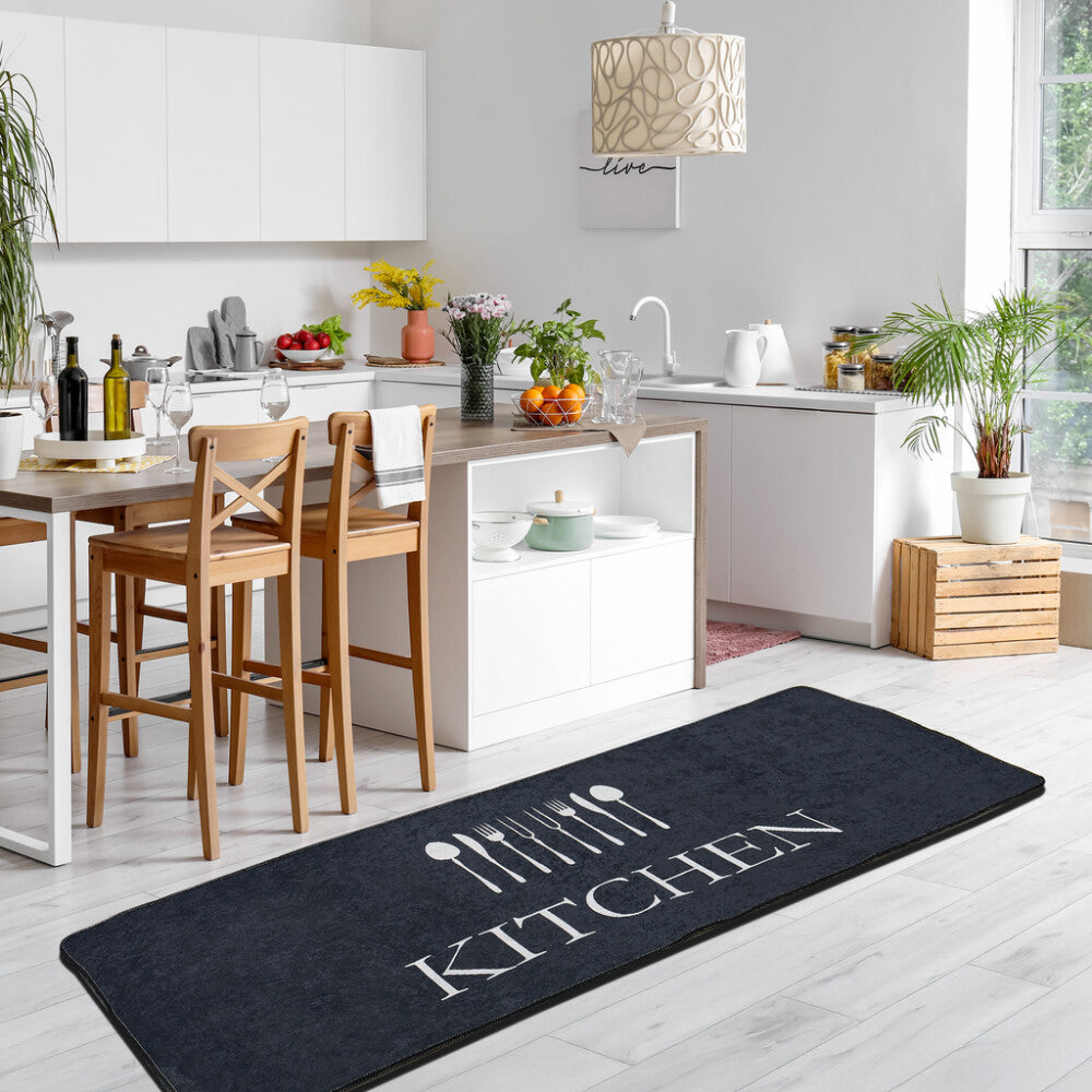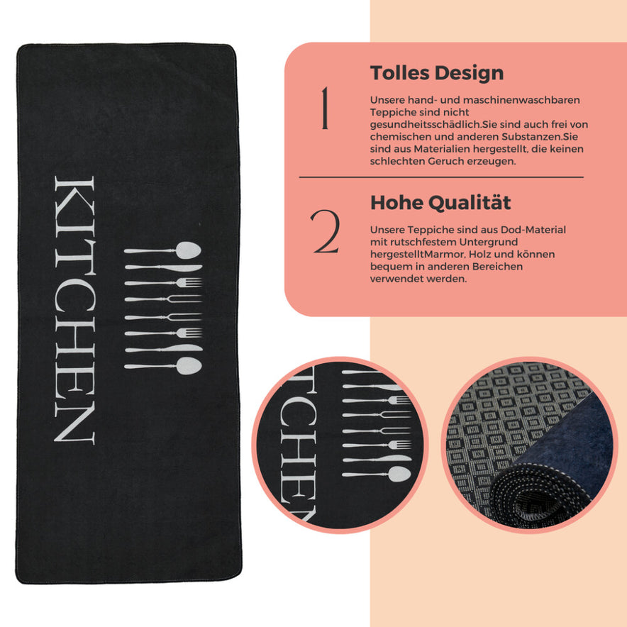 miqna Küchenteppich, rutschfeste Küchenläufer, Waschbarer Küchenteppich, Schwarz