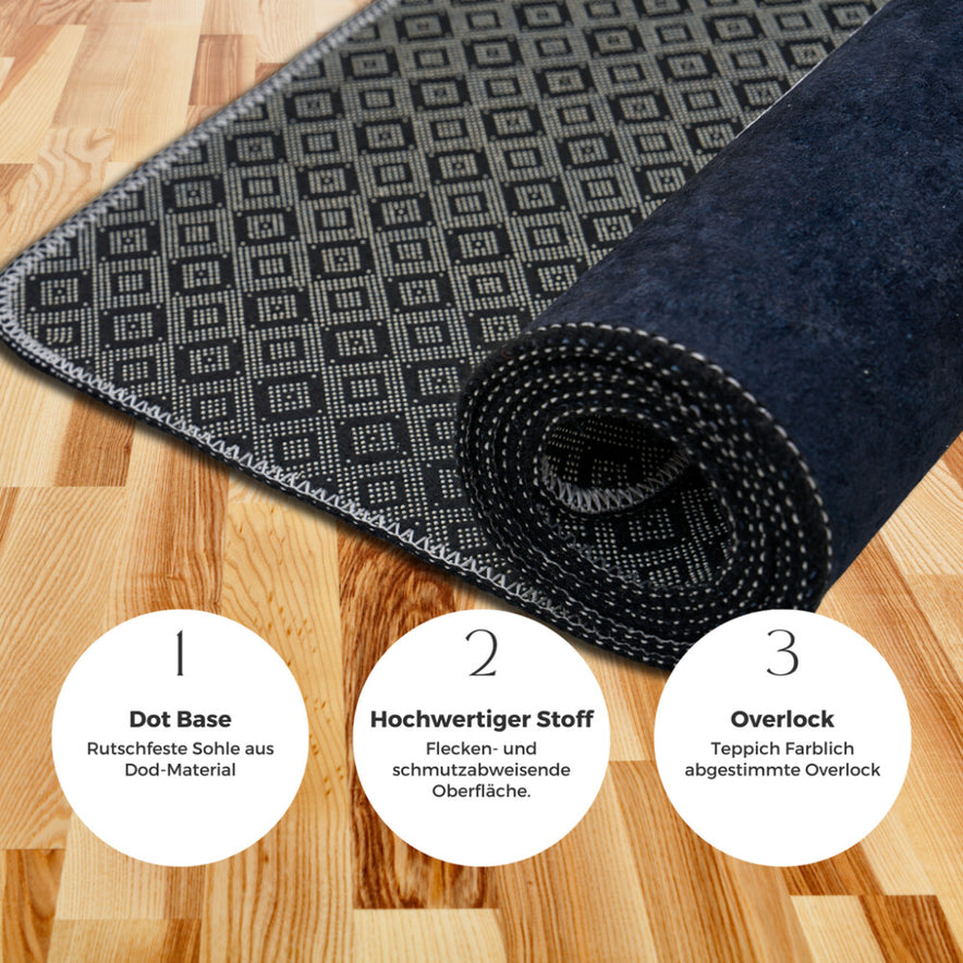 miqna Küchenteppich, rutschfeste Küchenläufer, Waschbarer Küchenteppich, Schwarz