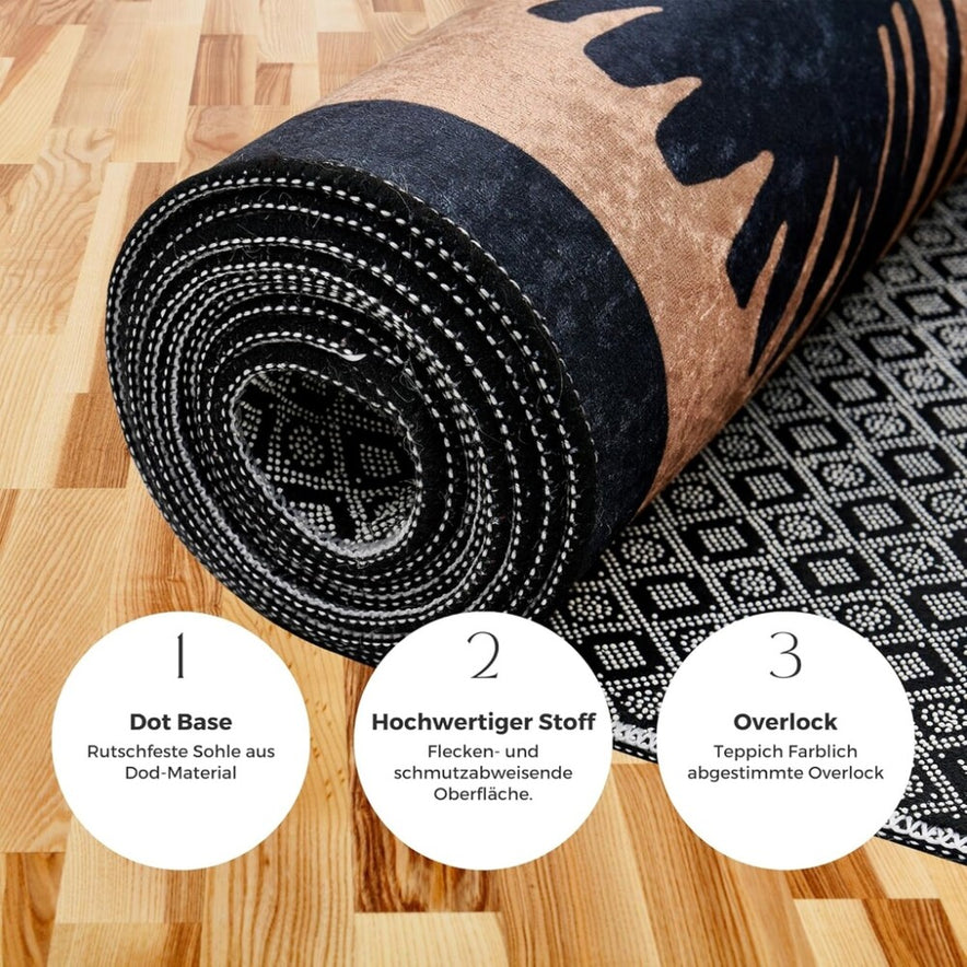 miqna Wohnzimmer Teppich Kurzflor Modern Läufer beige schwarz weiß 80x300 cm