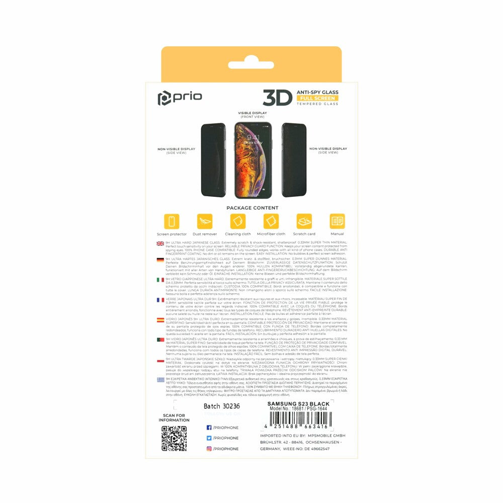 prio 3D Anti-Spy Displayschutzglas für Samsung S23 schwarz