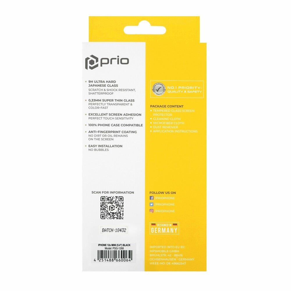 prio 3D Displayschutzglas für iPhone 13 mini schwarz