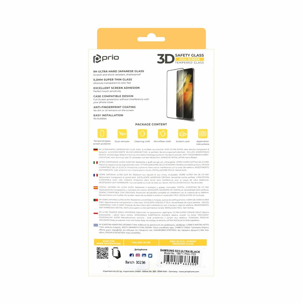 prio 3D Displayschutzglas für Samsung S23 Ultra schwarz