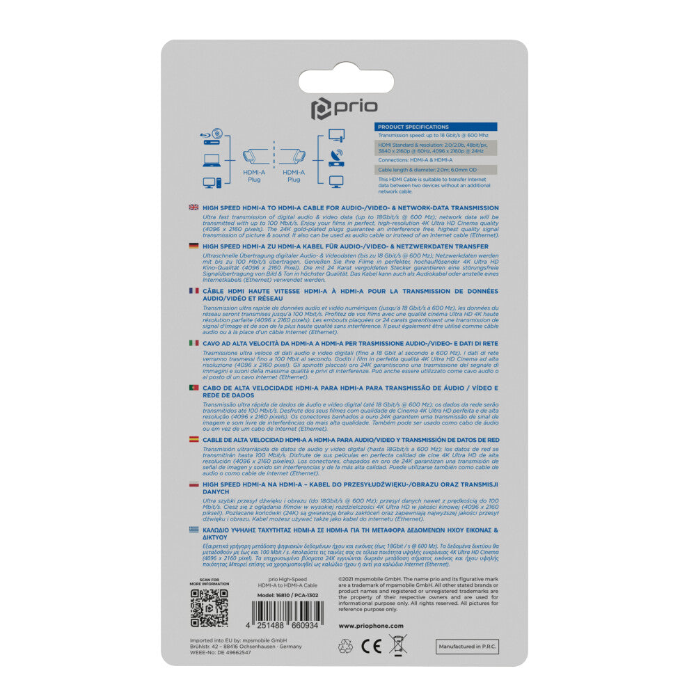 prio High-End HDMI A zu HDMI A Kabel 4K Ethernet 2.0m schwarz