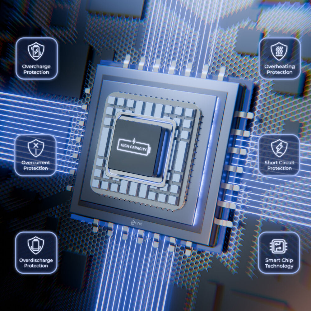 Ausgestattet mit einem hochwertigen Chipsatz mit mehreren Schutzprotokollen, einschließlich Überhitzungs- und Überladeschutz.