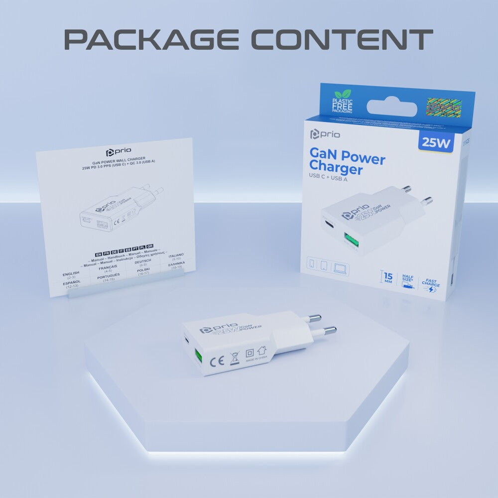 Prio 25W GaN Ladegerät – Kompakt & Schnellladen mit USB-C PD & USB-A QC 3.0