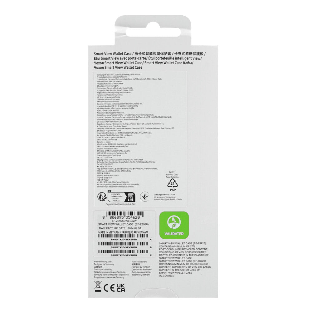 Samsung Galaxy S24 Plus Smart View Wallet Cover EF-ZS926Halten Sie alle Informationen immer griffbereit und schützen Sie Ihr Samsung Galaxy S24+ mit der Original Smart View Hülle. Ein praktisches Mini-View-Fenster ermöglicht es Ihnen, Anrufe zu empfangen und Benachrichtigungen zu verwalten, ohne dass Sie die Hülle öffnen müssen. Das Smart View Case schützt das Samsung Galaxy S24+ in den empfindlichsten Winkeln und dank des integrierten Steckplatzes können Sie eine der wichtigsten Karten mitnehmen.Eigenschaften:- Offizielle Samsung Smart View Schutzhülle für das Samsung Galaxy S24+- Das Case bietet dem Samsung Galaxy S24+ zuverlässigen Rundumschutz vor Beschädigungen- Klares Mini-Fenster und intelligenter Sensor lassen Sie Benachrichtigungen sehen und Anrufe entgegennehmen- Die Hülle ist ein ideales alltägliches Samsung Galaxy S24+ Zubehör- Die Hülle Smart View besteht aus hochwertigem Material, das eine lange Lebensdauer gewährleistetKompatibilität: Samsung Galaxy S24 Plus